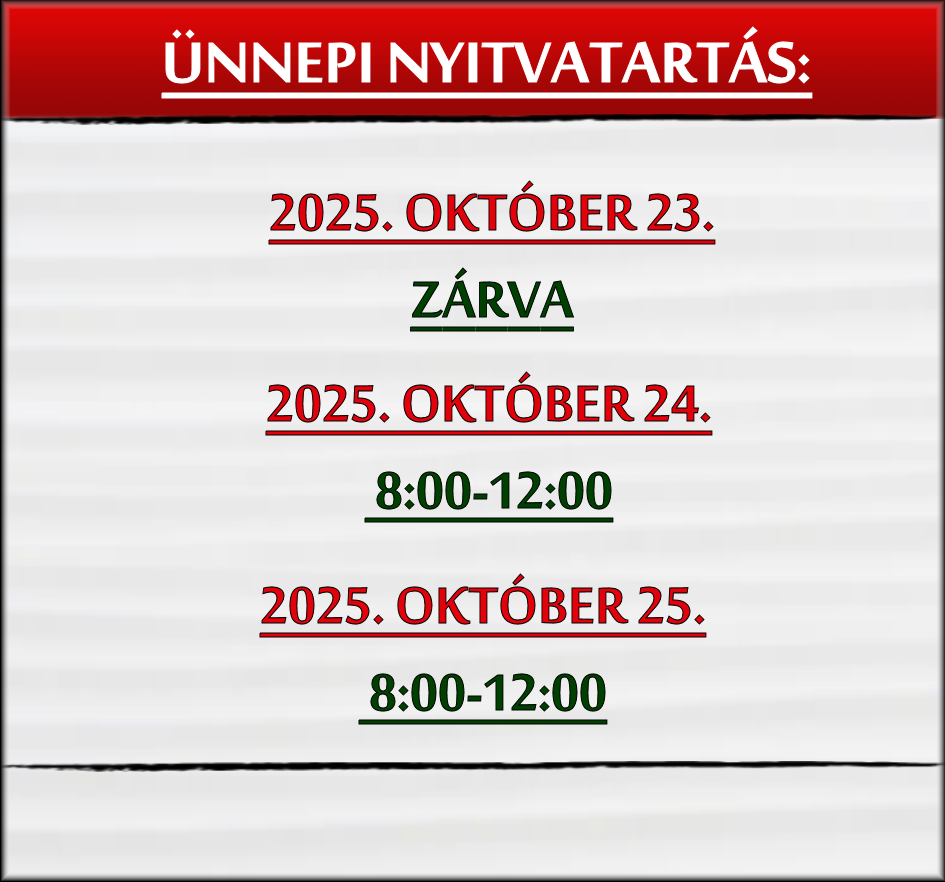 Nyitva: H-P: 7:30-16:00; Szo.:8:00-12:00